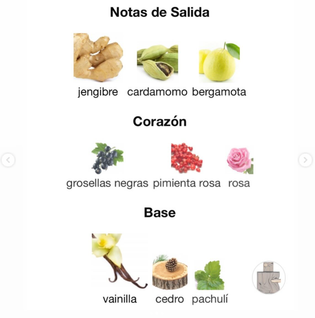 Notas de Fondo: vainilla, cedro y pachulí.